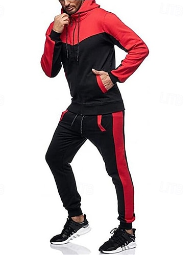 Per uomo Felpa con cappuccio Tuta Da Ginnastica Tuta da ginnastica Bianco Vino Arancione Verde Con cappuccio Color Block Collage 2 pezzi Sportivo Giornaliero Per eventi Streetwear Essenziale Informale