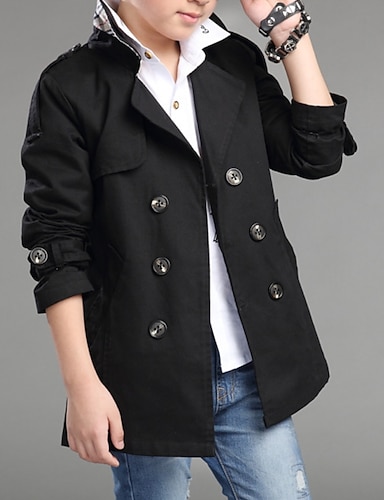 Bambini Ragazzi Impermeabile Capispalla Tinta unica Manica Lunga Tasca Bottoni Cappotto Scuola Cool Quotidiano Abito nero 3 pezzi (giacca+pantaloni+cravatta) Completo 4 pezzi kaki