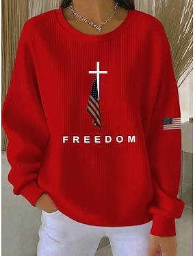 Felpa patriottica da donna per il Giorno dell'Indipendenza con grafiche a rilievo casual maniche lunghe girocollo top regolari casual casa strada blu nera rossa arancione verde primavera autunno