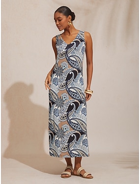 abito lungo in maglia elasticizzata aderente con motivo paisley vintage per le vacanze
