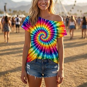 Retrò Vintage Anni '80 T-shirt Monospalla Maniche corte Hippie Disco Stampa tie dye Costume Per donna Unisex Halloween Carnevale Casuale Festival Musicale Festa a tema retrò Adulti Maglietta Estate