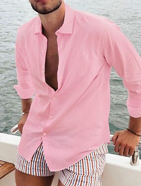 Per uomo Camicia di lino Camicia Estiva Abbigliamento da spiaggia Camicia casual Camicia con Bottoni Semplice Vacanza Casuale Nero Bianco Rosa Blu marino Manica Lunga Bavero N / D Abbigliamento