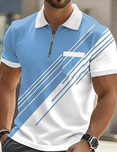 Per uomo Geometrico Polo Manica Corta Magliette polo Bavero Casual All'aperto Ferie Abbigliamento quotidiano Tasca Stampa 3D Primavera & Estate Blu Bianco Viola
