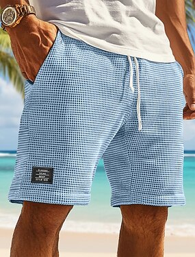 Per uomo Pantaloncini Waffle Pantaloncini Estivi Shorts da Spiaggia Pantaloncini casual Coulisse Elastico in vita Tinta unica Comodità Lunghezza al ginocchio Quotidiano All'aperto Abbigliamento