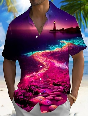 Per uomo Albero di Cocco Natura e paesaggi Piante Tropicali Camicia hawaiana estiva Camicia con Bottoni Camicia Aloha Manica Corta Hawaiano Casuale Vacanza Estate Primavera Collo ripiegato Stampa 3D