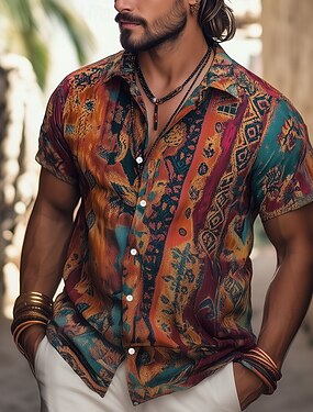 Per uomo Boho Retrò Nativo americano Camicia Camicia hawaiana estiva Camicia con Bottoni Manica Corta Hawaiano Vacanza Ferie Abbigliamento mare Estate Primavera Collo ripiegato Stampa 3D camicie con