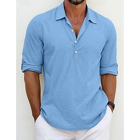 Per uomo Camicia Camicia di lino Camicia Estiva Abbigliamento da spiaggia Camicia con Bottoni Semplice Quotidiano Vacanza Blu Nero Bianco Rosa Manica Lunga Collo ripiegato Primavera & Estate Estate