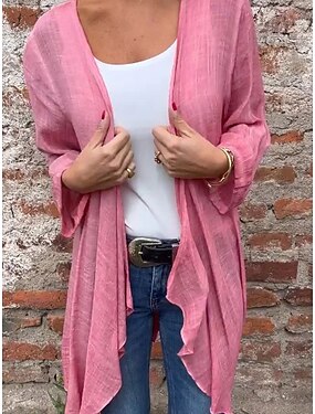 Per donna Abbottonare Blusa Finto cotone e lino Tinta unica Quotidiano Elegante Casual Manica Lunga Scollo a V Top lunghi Quotidiano Rosa Arancione Beige Grigio Estate Primavera Autunno