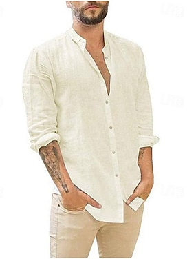 Per uomo Camicia di lino Camicia popover Camicia casual Camicia da Spiaggia Camicia con colletto alla coreana Semplice Casuale Spiaggia Blu Nero Bianco Rosa Manica Lunga Henley Estate Primavera