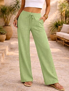 Per donna Finto cotone e lino Pantaloni Estivi Vacanza Essenziale Lunghezza intera Vita media Semplice Coulisse Comodità Micro-elastico Quotidiano Blu Verde translucido Aalbicocca Grigio Estate