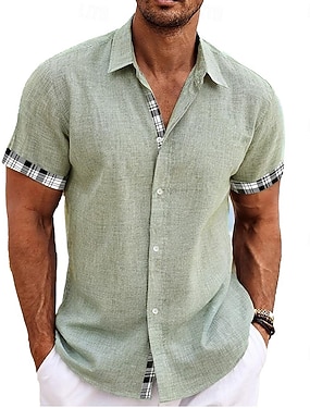 Per uomo camicia di lino Camicia da spiaggia Scozzese a quadri Esterno Informale Rosa Verde Manica corta Colletto alla coreana Estate Primavera Abbigliamento Stampa