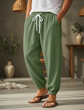 Per uomo Pantaloni di Lino Pantaloni Pantaloni Estivi Pantaloni da Spiaggia Pantaloni jogger Coulisse Elastico in vita Tasca con Patta Tinta unica Comodità Traspirante Quotidiano All'aperto Spiaggia