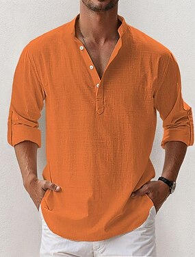 Per uomo Camicia di lino Camicia Estiva Camicia vintage Camicia etnica Camicia a Maniche Lunghe Boho Vacanza Streetwear Arancione Manica Lunga Scollo a V Estate Primavera Abbigliamento Etnico