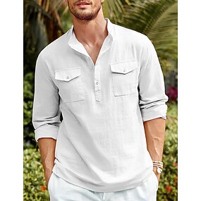 Per uomo Camicia Camicia in lino e cotone Camicia estiva Camicia con bottoni Liscio Informale Giornaliero Nero Bianco Blu Cachi Manica lunga Colletto Primavera estate Abbigliamento Tasche