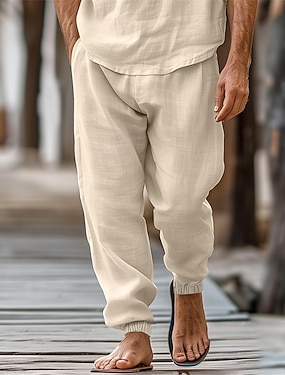 Per uomo Jogging Pantaloni di lino Pantaloni Pantaloni estivi Pantaloni da spiaggia Tasche A cordoncino Vita elastica Liscio Comfort Traspirante Lunghezza intera Informale Giornaliero Per eventi Di