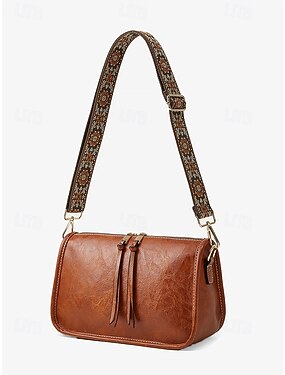 borsa a tracolla in similpelle marrone da donna con tracolla regolabile con fantasia - elegante borsa a tracolla per look casual e boho chic