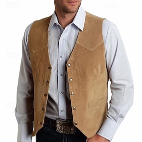 Per uomo Gilet in finta pelle scamosciata Gilet occidentale Gilet Formale Matrimonio Vacanza Affari Moda Cowboy Primavera Autunno Tasca Classico Bottoni 100% poliestere finto camoscio Confortevole