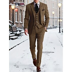 Per uomo Blazer in Tweed Colletto ad incastro Retrò Vintage Spina di Pesce Blazer Blu marino Marrone Grigio scuro Vestibilità standard Monopetto a tre bottoni