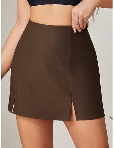 Per donna Gonna da vacanza Moda Casual Mini Vita Alta Gonne Semplice Con Spacco Micro-elastico Quotidiano Streetwear Vinaccia Nero Verde militare Marrone Estate Poliestere