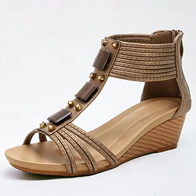 sandali con zeppa boho da donna – scarpe estive aperte con accenti di perline e cinturino regolabile per abbigliamento casual e da spiaggia