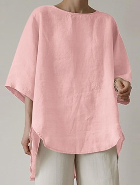 Per donna Blusa Finto cotone e lino Tinta unica Elegante Casual Manica 3/4 Scollo a V Top Regolari Quotidiano Nero Bianco Rosa Verde Albicocca Estate Primavera