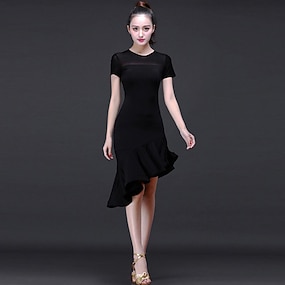 abito da ballo latino increspato performance di allenamento femminile maniche corte abito da chiesa modale da donna quotidiano