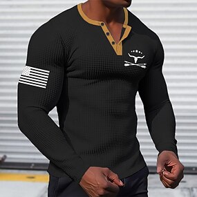 Per uomo Grafico Cowboy Maglia Henley Maglietta a nido d'ape Manica Lunga Stampa 3D Moda Designer Semplice Sport all'Aperto Ferie Festival Primavera & Autunno Nero Bianco Marrone Verde Henley