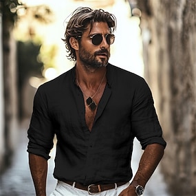 Per uomo Camicia camicia di lino Liscio Informale Giornaliero Nero Bianco Blu Cachi Manica lunga Con cappuccio Primavera estate Abbigliamento Bottoni