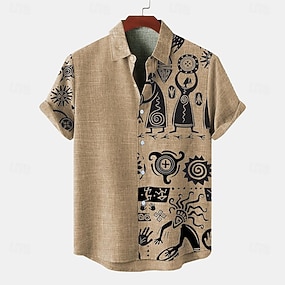 Per uomo Camicia Camicia di lino Camicia popover Camicia Estiva Abbigliamento da spiaggia Camicie retrò Geometrico Vacanza Streetwear Cachi Manica Lunga Scollo a V Estate Primavera Abbigliamento