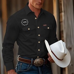 Per uomo Bandiera Americana Patriottico Camicia da lavoro Camicia Western Camicia cargo Manica Lunga Casual Sport & Outdoor Uscire Inverno Primavera & Autunno Collo ripiegato Stampato Nero Bianco