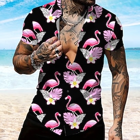 Per uomo Fenicottero Camicia da spiaggia Camicia Aloha Manica corta Hawaiano Da mare Estate Primavera Collo ripiegabile Abbottonare Nero Grigio