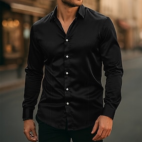 Per uomo Camicia Camicia in raso Camicia elegante Camicia con Bottoni Camicia da Ballo Sfumatura Affari Matrimonio Nero Bianco Manica Lunga Scialle Tutte le stagioni Abbigliamento Avvolgere