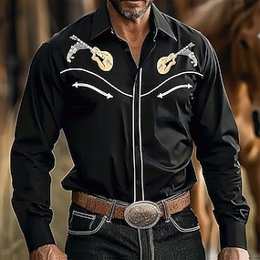 Per uomo Strumento musicale Camicia Western Manica Lunga Western Sport all'Aperto Primavera Autunno Collo ripiegato Cardigan con Bottoni Nero