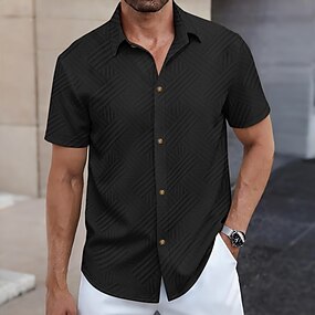 Per uomo Camicia Camicia Estiva Camicia casual Camicia con Bottoni Camicia Jacquard Blu Nero Bianco Rosa Blu marino Manica Corta Semplice Con onde Bavero Casuale Abbigliamento casual alla moda