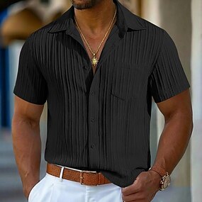Per uomo Camicia Camicia Estiva Camicia casual Camicia da Spiaggia Camicia con Bottoni Camicia Jacquard Blu Nero Bianco Rosa Blu marino Manica Corta Semplice Bavero Casuale Abbigliamento casual alla