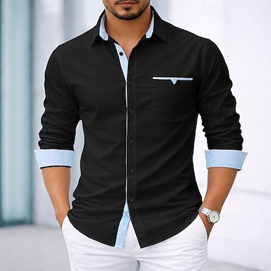 Per uomo Camicie Camicia con colletto Camicia con bottoni Color Block Matrimonio Giornaliero Nero Bianco Blu marino Manica lunga Collo ripiegabile Primavera & Autunno Abbigliamento Collage