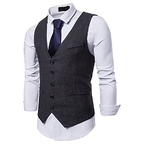 Per uomo Gilet Panciotto Matrimonio Attività commerciale Serata formale Ufficio Primavera Di base Poliestere Comodo Tinta unita Doppiopetto A V Taglia piccola Nero Cachi Grigio Gilet