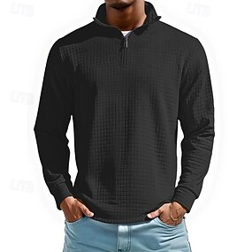 Per uomo Polo Polo con zip a un quarto Abbigliamento quotidiano Data Zip a un quarto Manica Lunga Moda Essenziale Semplice Cerniera Primavera Autunno Vestibilità regolare Vinaccia Nero Bianco Blu