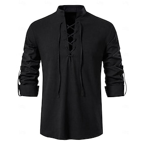 Medievale Rinascimento 17° secolo Blusa / Camicia Costume Cosplay Pirata Cavaliere Vichingo Cavaliere Celtico Elfico Coulisse Tinta unita Costume Per uomo Costumi da pirata Fantasia Halloween