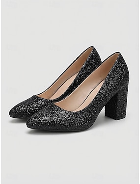 Eleganti décolleté nere glitterate da donna - scarpe da lavoro professionali con tacco a blocco e un tocco di brillantezza per cene di lavoro e feste in ufficio. &abbigliamento da lavoro sofisticato