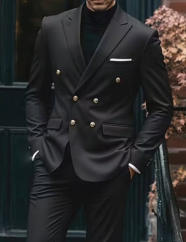 Uomo Abiti da lavoro Affari Nero Borgogna Autunno & Inverno Tuta Bavero classico Affari Tinta unita Vestibilità su misura 2 pezzi Doppiopetto a sei bottoni