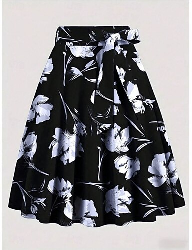Per donna Gonna da vacanza Elegante Moda Casual Midi Vita Alta Gonne Floreale Stampato Micro-elastico Quotidiano Streetwear Nero Primavera Poliestere