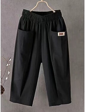 Pantaloni estivi da donna 100% cotone, pantaloni cropped, moda streetwear, comodi, lunghezza alla caviglia, vita media, tinta unita, pizzo, comodi, comodi, abbigliamento quotidiano, per uscire, neri, bianchi, verdi, kaki, estivi, vestibilità regolare