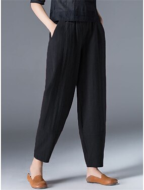 Per donna Finto cotone e lino Pantaloni Estivi Culotte Pantaloni Larghi Streetwear Semplice Casual Lunghezza alla caviglia Misura del girovita medio Semplice Tasca Elastico in vita Baggy Morbido