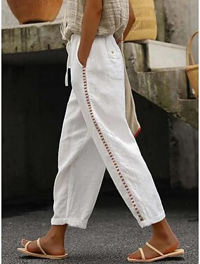 Per donna Pantaloni in cotone e lino Pantaloni Pantaloni Estivi Pantaloni Larghi Vacanza Essenziale Casual Lunghezza intera Vita Alta Semplice Tasca Gamba larga Fascia Elastica Morbido Confortevole
