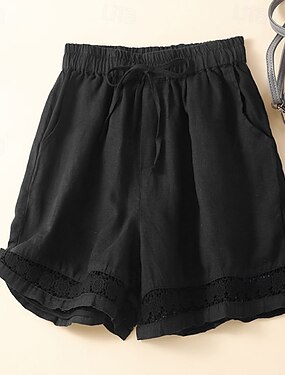 Per donna Misto cotone Finto cotone e lino Shorts Pantaloni Estivi Casual Quotidiano Lunghezza al ginocchio Semplice Tasche Laterali Traspirabilità Confortevole Micro-elastico Weekend Nero Rosa