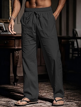 Per uomo Pantaloni di lino Pantaloni Pantaloni estivi Pantaloni da spiaggia A cordoncino Vita elastica Gamba dritta Liscio Comfort Traspirante Lunghezza intera Giornaliero Per eventi Spiaggia
