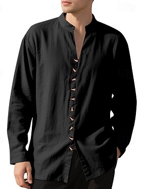 Per uomo Camicia Camicia di lino Camicia casual Camicia con Bottoni Camicia di cotone Semplice Vacanza Camicia hawaiana Nero Bianco Rosa Viola Manica Lunga Colletto alla coreana Primavera Autunno