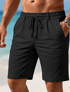 Per uomo Shorts di Lino Pantaloncini Estivi Shorts da Spiaggia Coulisse Tasca Semplice Comodità Traspirante Lunghezza al ginocchio Quotidiano All'aperto Ferie Vacanza Casual Nero Bianco Inelastico
