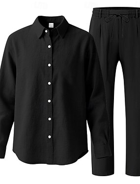 Per uomo Camicia di lino Due pezzi Set Camicia E Pantaloni di Lino Pantaloni Pantaloni casual Impostare Semplice Quotidiano All'aperto Vacanza Collo ripiegato Manica Lunga Estate Primavera Moda